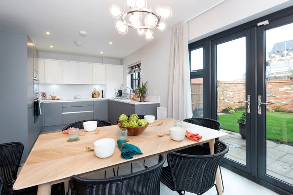 The recently launched new show home, The Rolvenden, is a stunning example of a three-bedroom link detached home offering a large open-plan kitchen/breakfast/dining room with French doors opening onto the rear garden, providing the perfect space to relax, entertain and spend quality time together. Double doors open into a spacious, dual aspect living room. The perfect place to relax, watch TV and unwind after a busy working day.