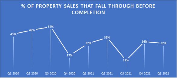 “Sellers also seem concerned that the current property bubble is unsustainable. 25% of failed sales since the start of 2022 have been as a result of the seller pulling out of the sale due to slow progress. Sellers are keen to lock-in the sale of their property before demand or prices begin to dwindle.”