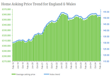 - The expected seasonal rise in the national average asking price failed to materialise during the last month due to weaker pricing in London, the South East and the South West. Overall, asking prices have slipped by 0.1% since the January reading across England and Wales. Annualised home price growth is now just 1.7% overall.