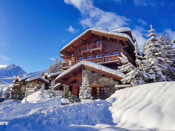 Stunning 5 bedroom luxury chalet is a few steps from the ski lifts to whisk you up to the Courchevel ski area and then beyond to the 3 Valleys.