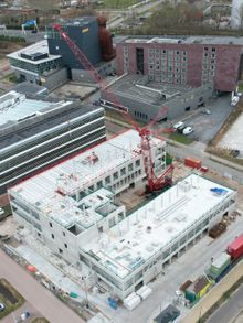 Working closely with the project's main contractor, Dura Vermeer Bouw Zuid West, and concrete supplier Holcon BV; Mammoet supported the assembly of the building's shell structure, which was made of precast concrete and steel.
