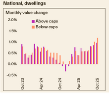 Perhaps most surprisingly, regional NSW saw a 1% increase in home values both above and below the caps. The 1% uplift in home values is unusual for NSW, which had been averaging monthly performance of 0.4% a month through 2025 before October.