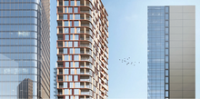 The sleek towers, designed by architecture firm Fender Katsalidis, will feature intricate brick masonry and arched windows at street level.