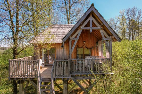 Located near the village of Les Eyzies in the Vézère Valley, the property combines imaginative architecture with a nature-focused guest experience. Designed to blend seamlessly into the surrounding woodland, the retreat currently operates as a distinctive hospitality business offering visitors the opportunity to stay in unique accommodation inspired by the natural environment.